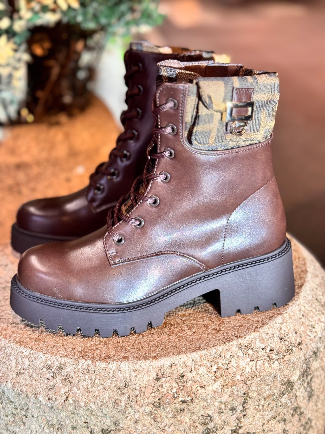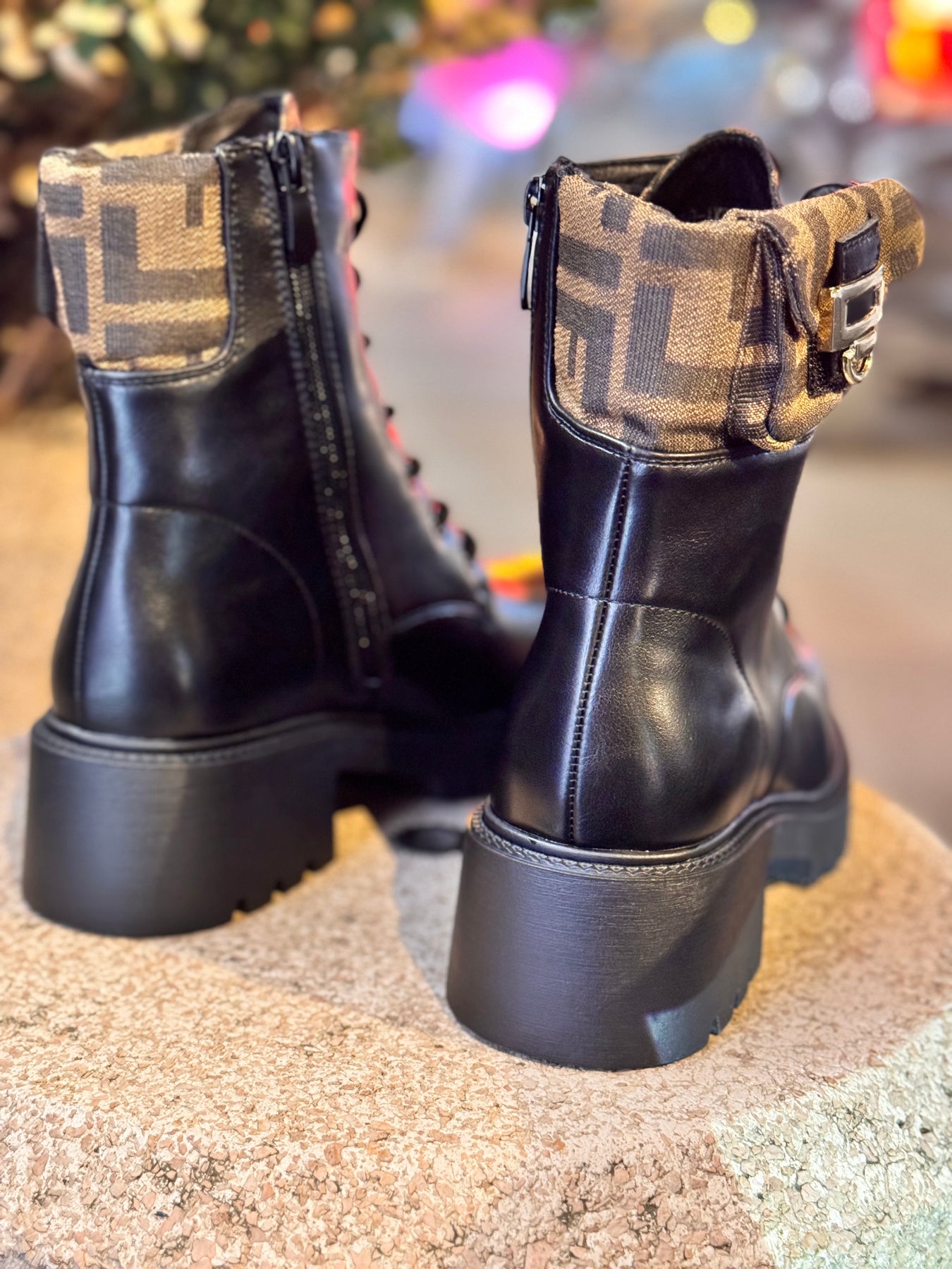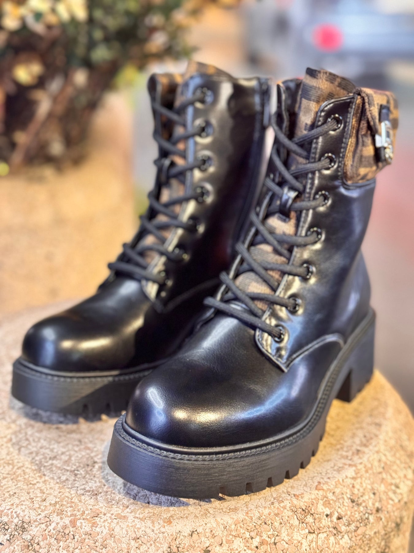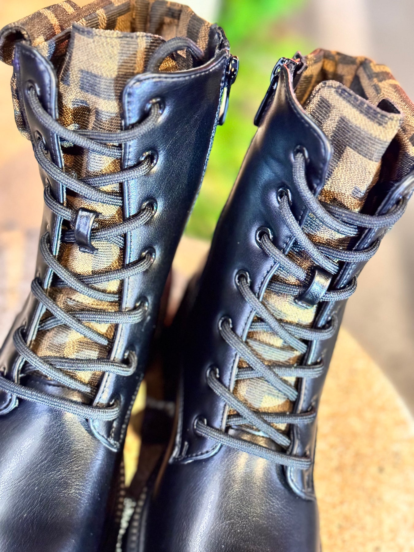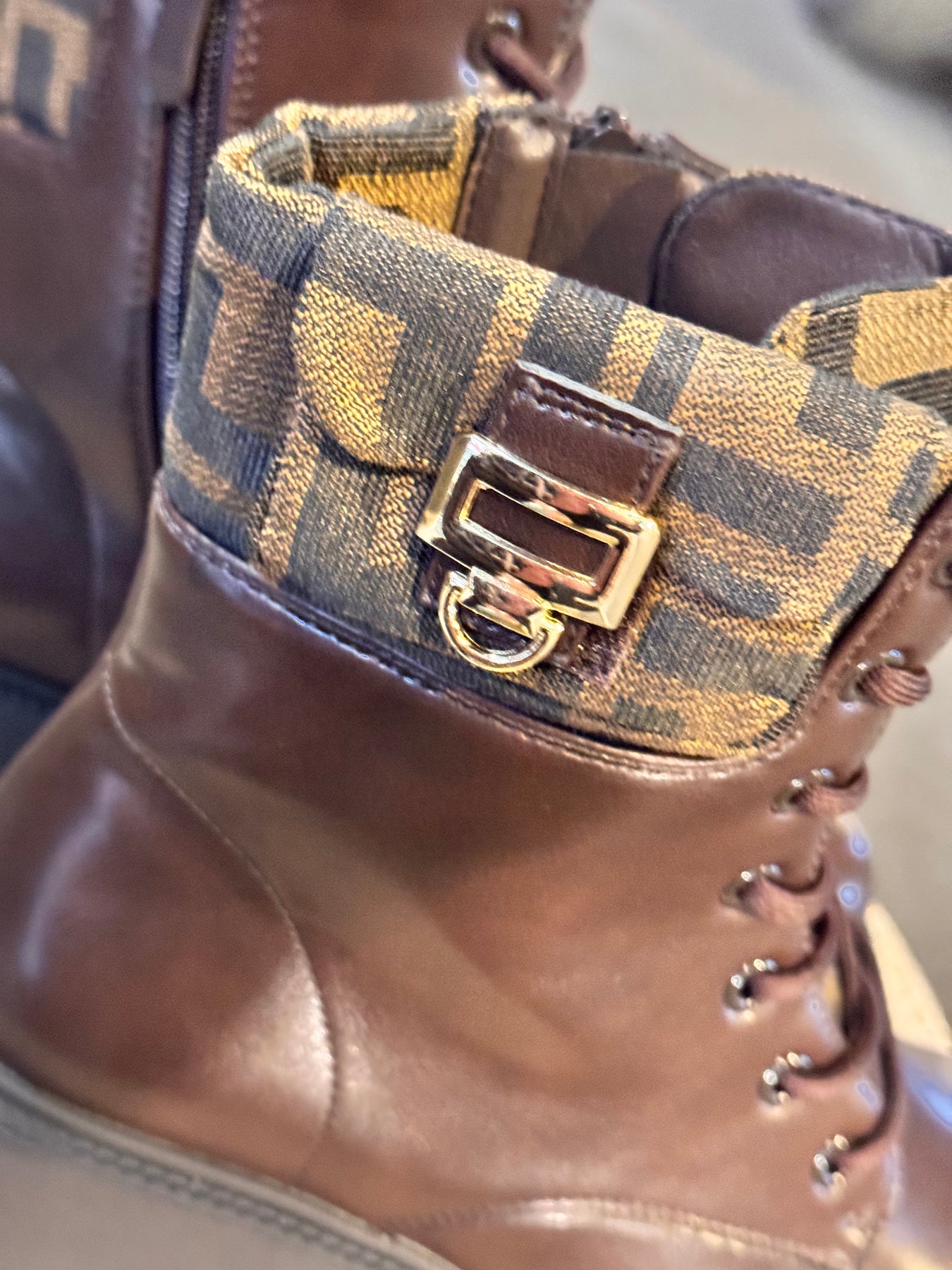 Anfibio in eco pelle, con lacci e zip per facilitare la calzata. Particolare per i suoi dettagli sulla linguetta e con il giro legato e in più ha anche un piccolo borsello decorativo!
