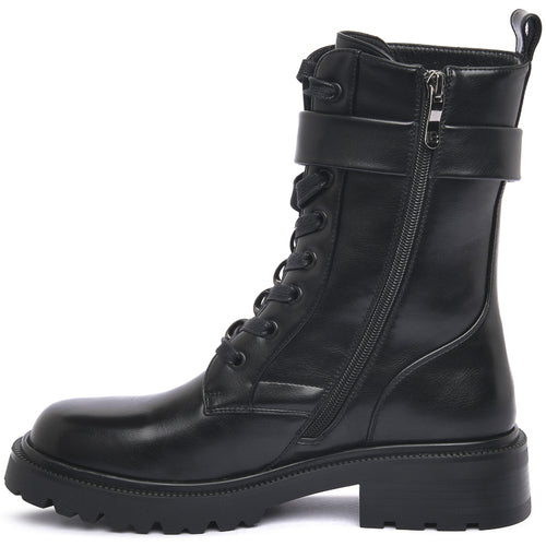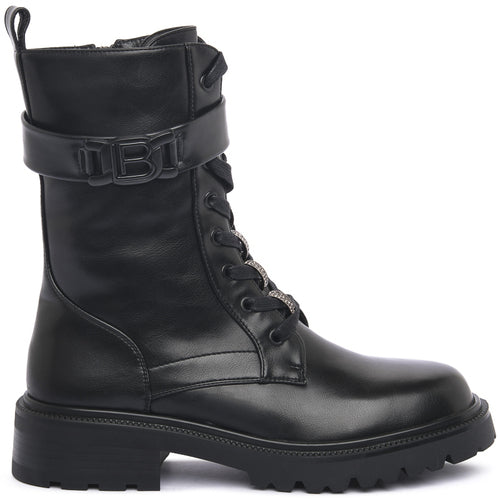 Anfibio in eco pelle con lacci adornati da charm che possono anche essere tolti. Facilita la calzata là zip laterale.