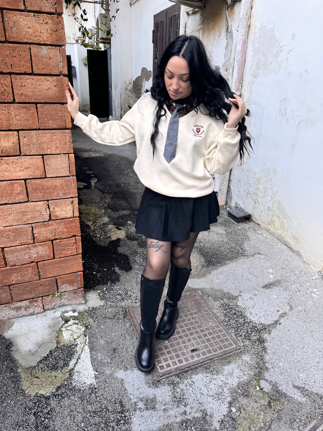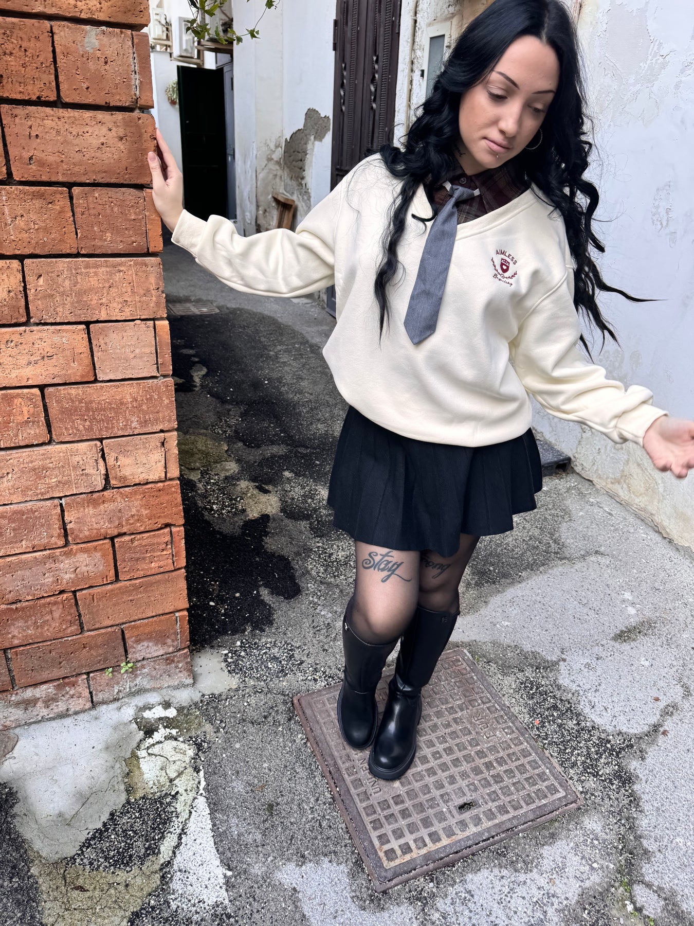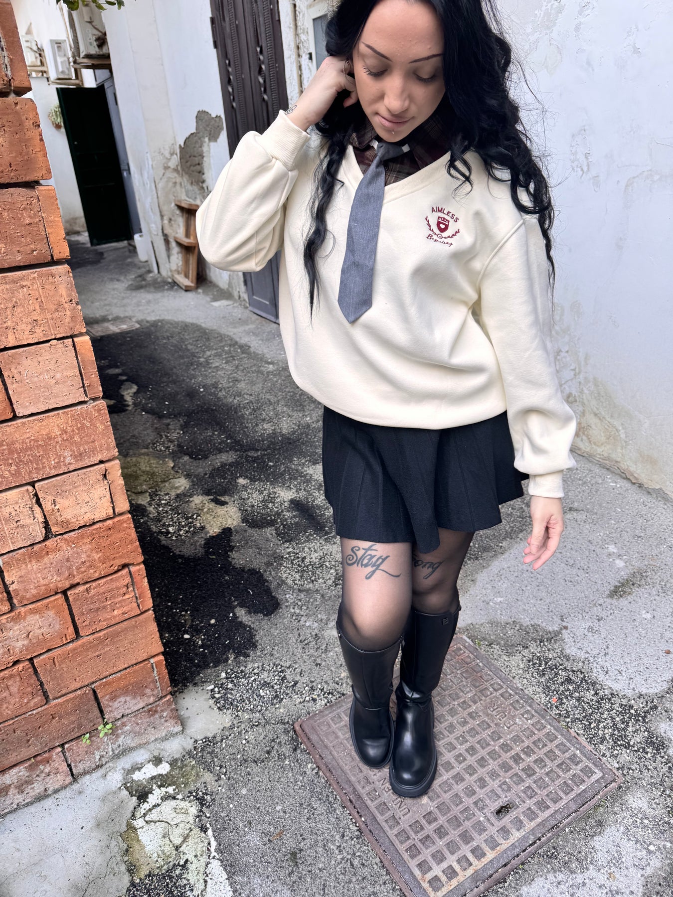 Felpa con collo di camicia e cravatta, taglia unica vestibilita leggermente over