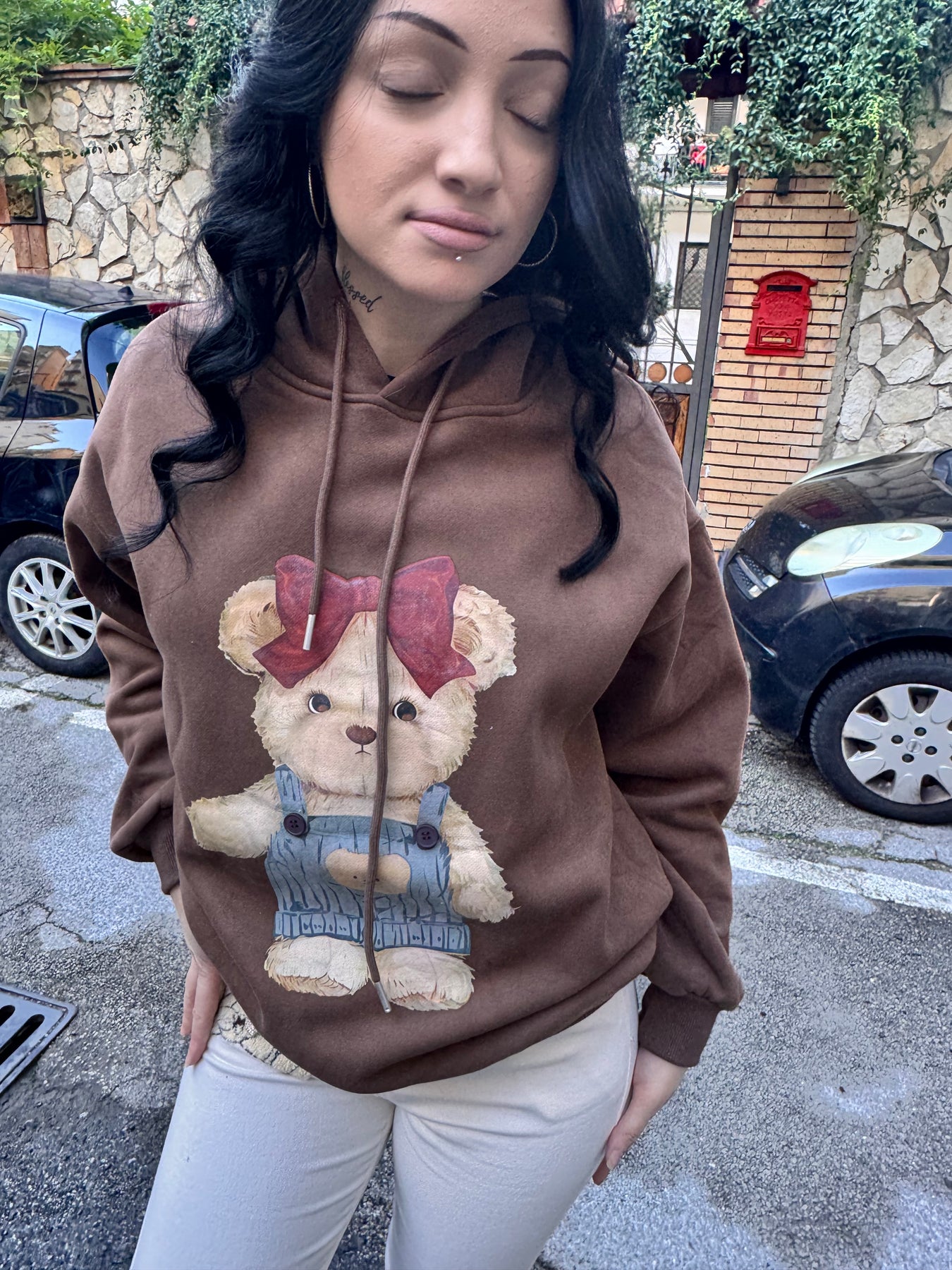 Felpa morbida e calda con cappuccio e stampa con Teddy