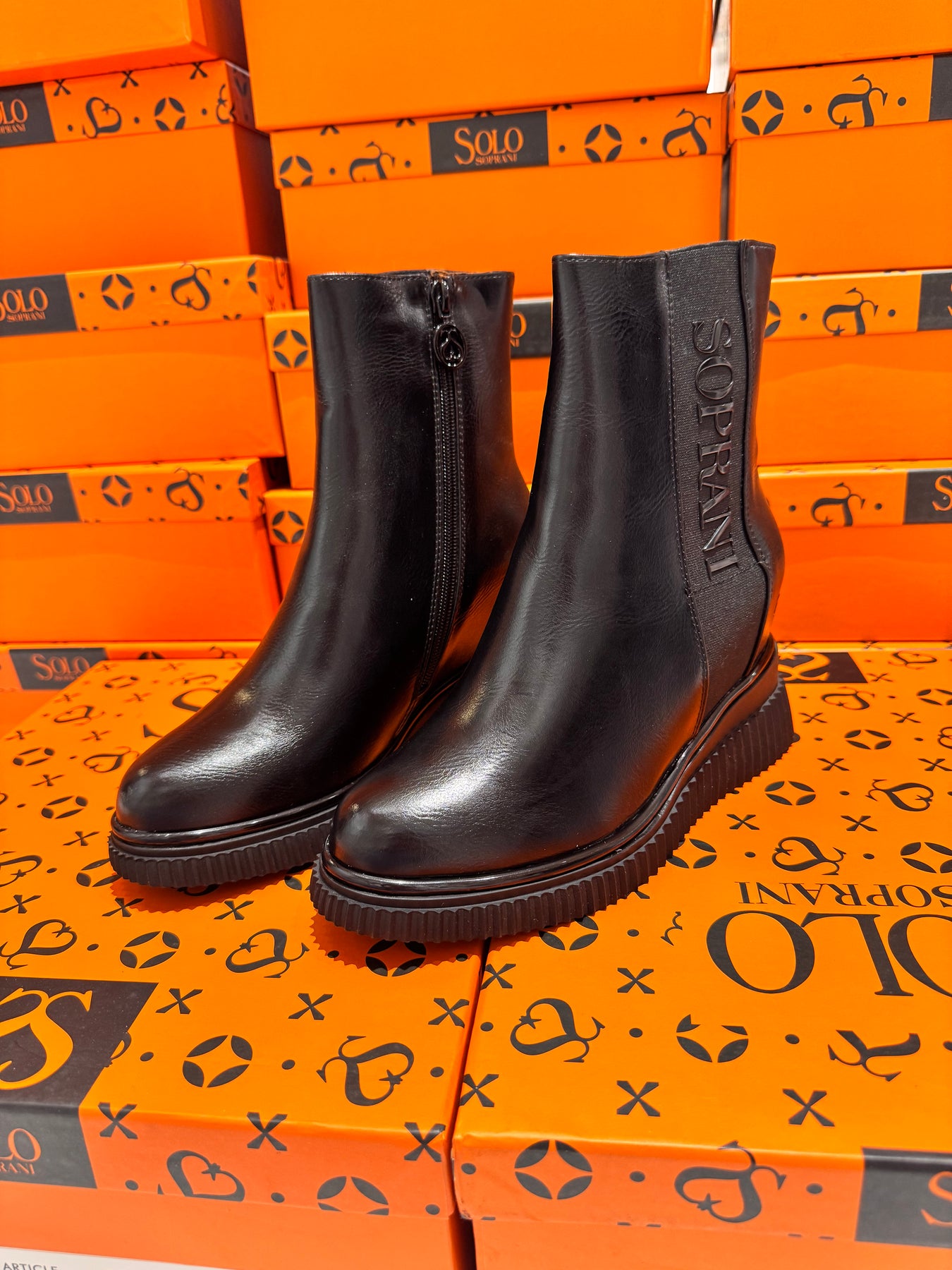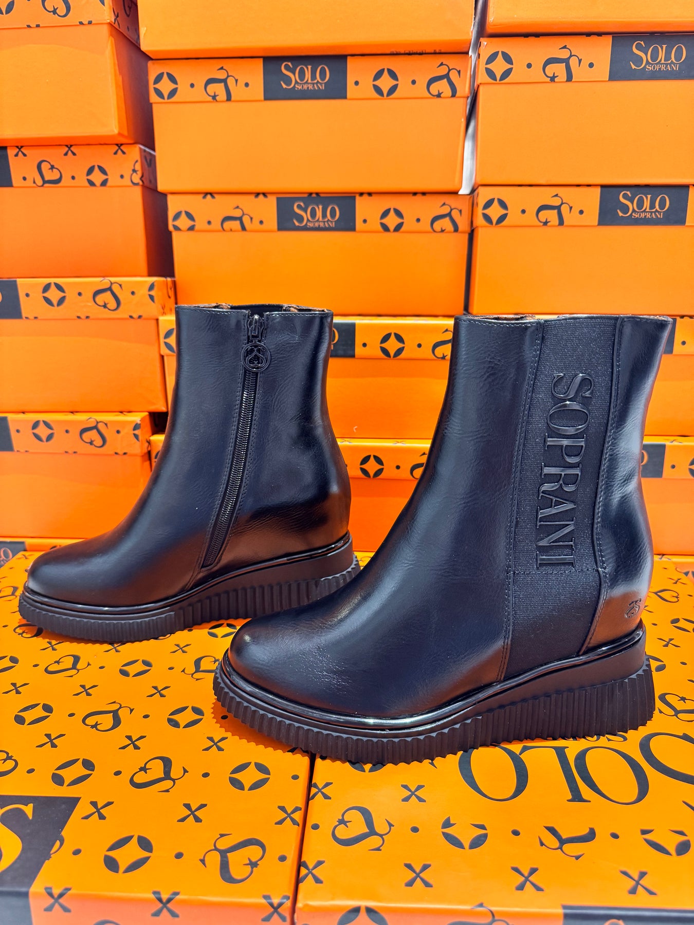 Stivaletto in eco pelle con zeppetta unita di 3 cm in gomma.