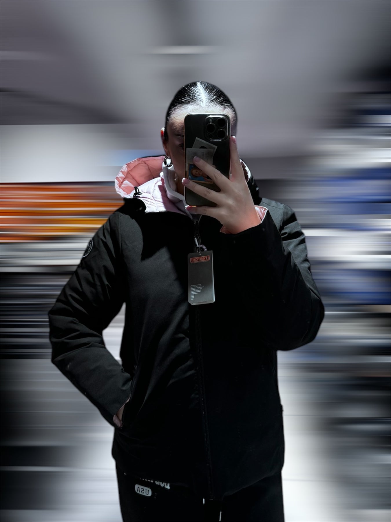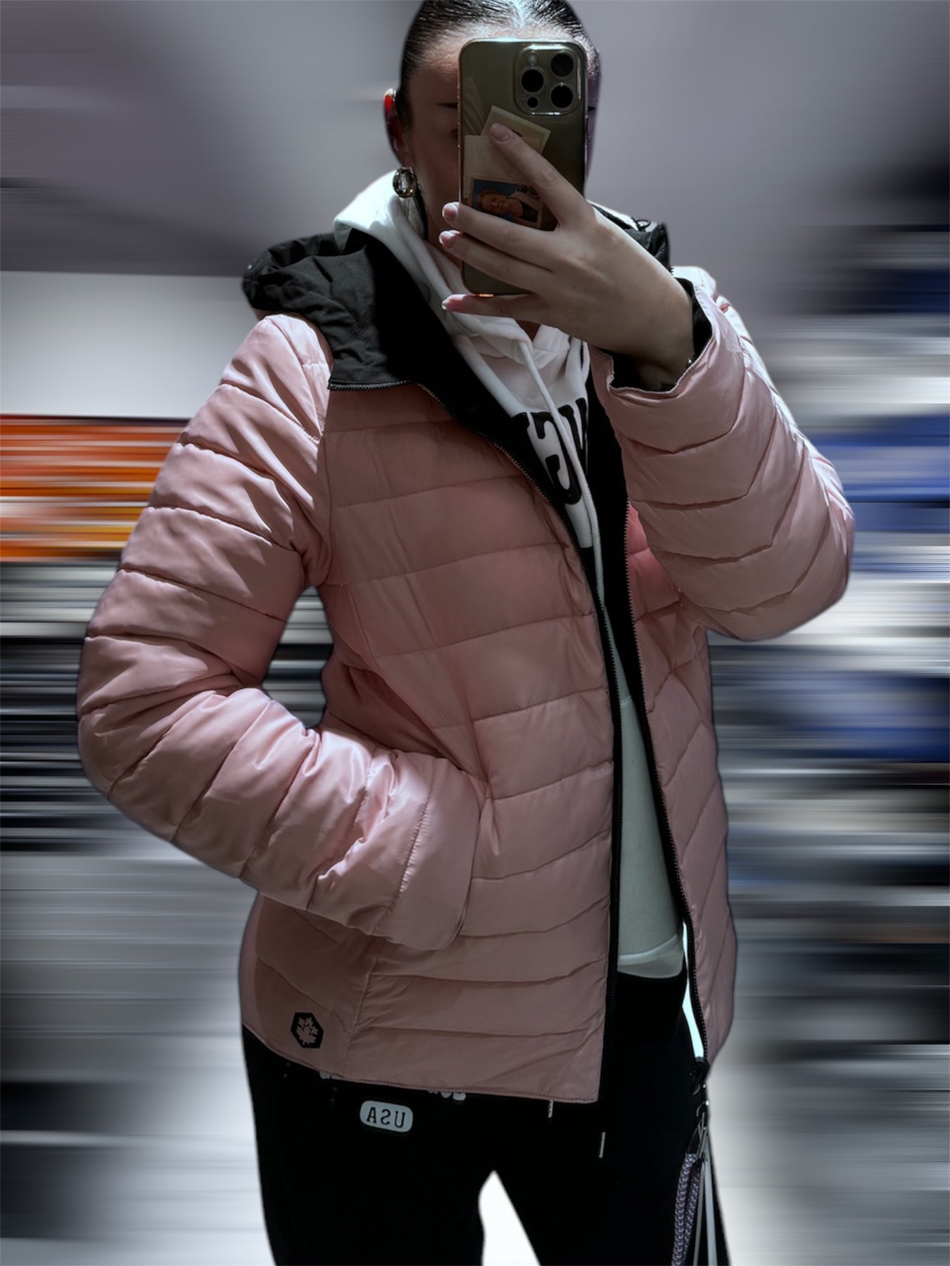 Giubbino in tessuto idro repellente, con chiusura a zip cappuccio e tasche che hanno sempre la chiusura a zip.
