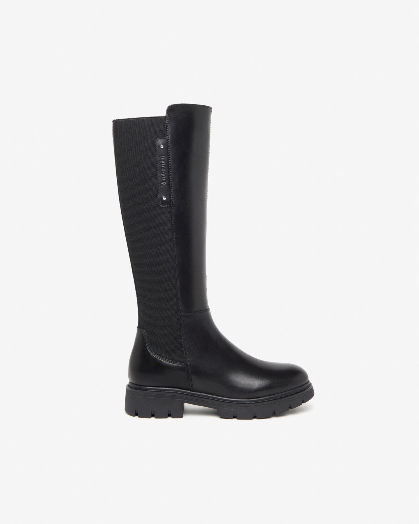 Stivale lungo sportivo stile anfibio in pelle con parte posteriore totamente elastico che insieme alla zip laterale consento di essere calzati con estrema facilità